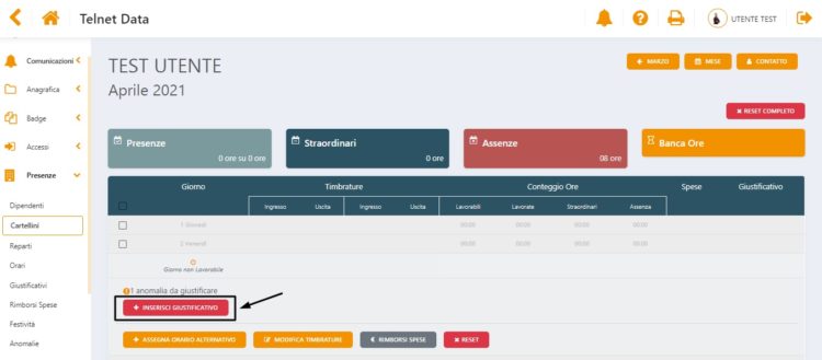 Dopo aver inserito l’anagrafica del dipendente si provvede alla gestione del cartellino, selezionando la data in cui andranno inserite le ferie.